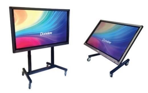 Height adjustable mobile Tilt trolley Electric height adjustable Manual tilt, with 6 easel positions Supports 65 and 75 inch panels Accessories include surge protected power board and rear laptop tray lockable castors on rear wheels |